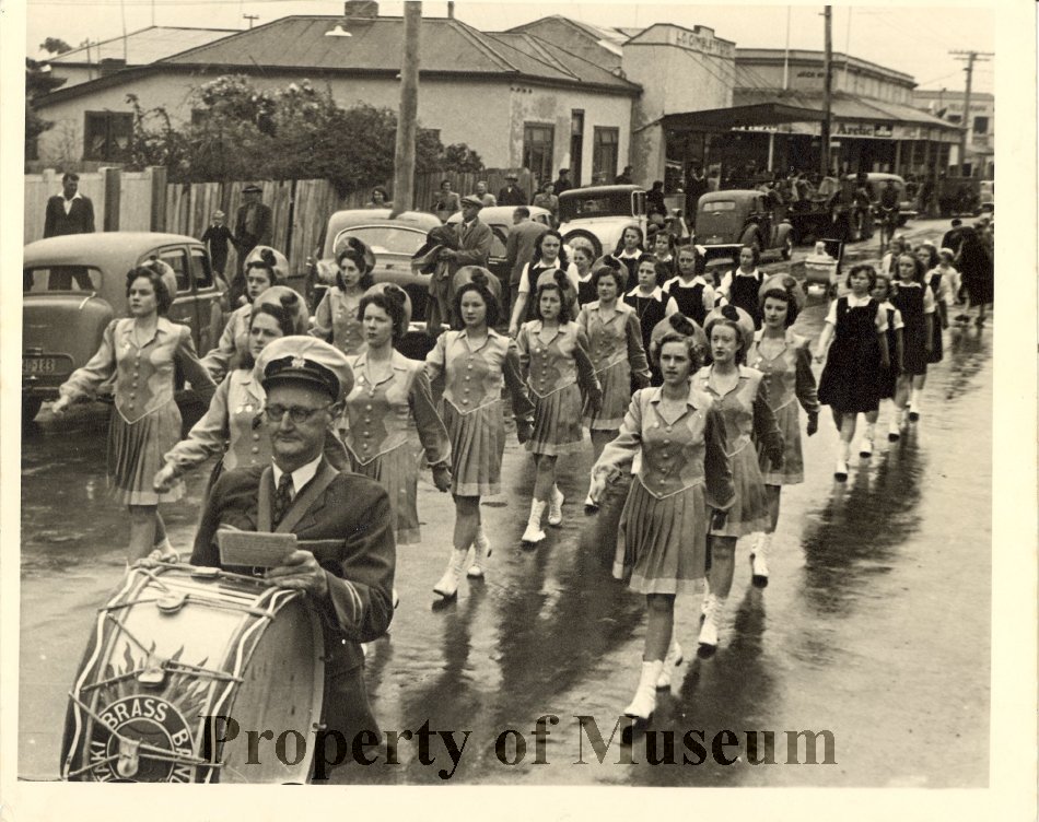Led by the Otaki Brass Band. Behind the Bandoliers are the junior team, the Tuis, formed in 1948.