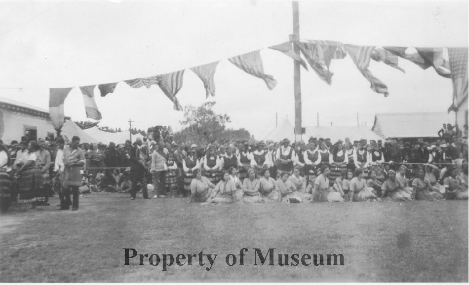 Large group of poi dancers and others at Raukawa Marae for opening.