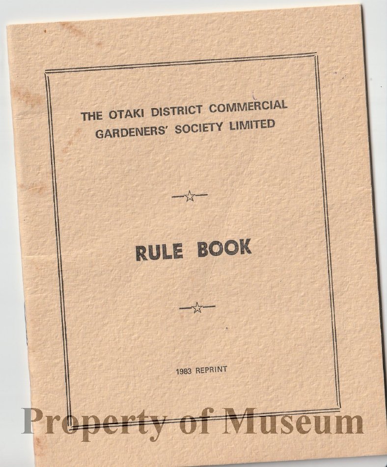 1983 reprint edition of Rules for the Otaki District Commercial Gardeners' Society Ltd.