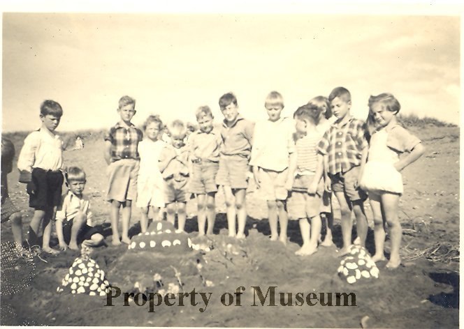 Children, accompanied by staff members, often went down to the beach to swim and play.