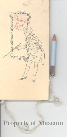 Dance List with small blue pencil attached with a fine cord.