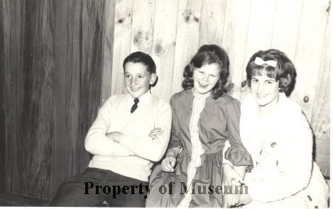 Frances Beck (centre), Sylve Constable (right) and a young friend (left), seated at a Hadfield Hall dance, mid-1960s.