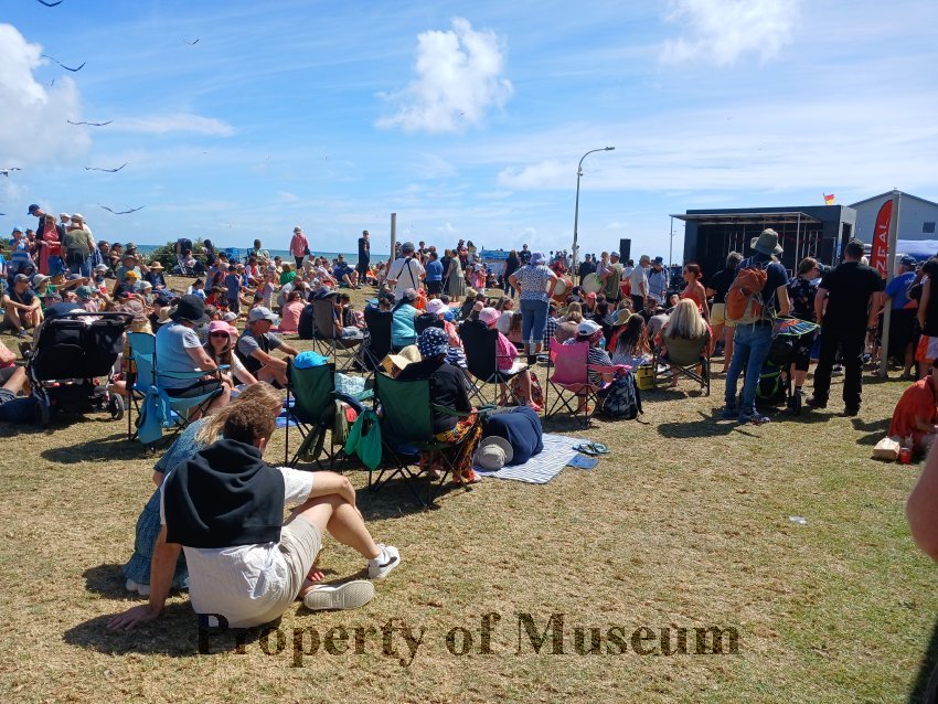 Visitors enjoying the music performances at the Otaki Kite Festival, 18 February 2024.